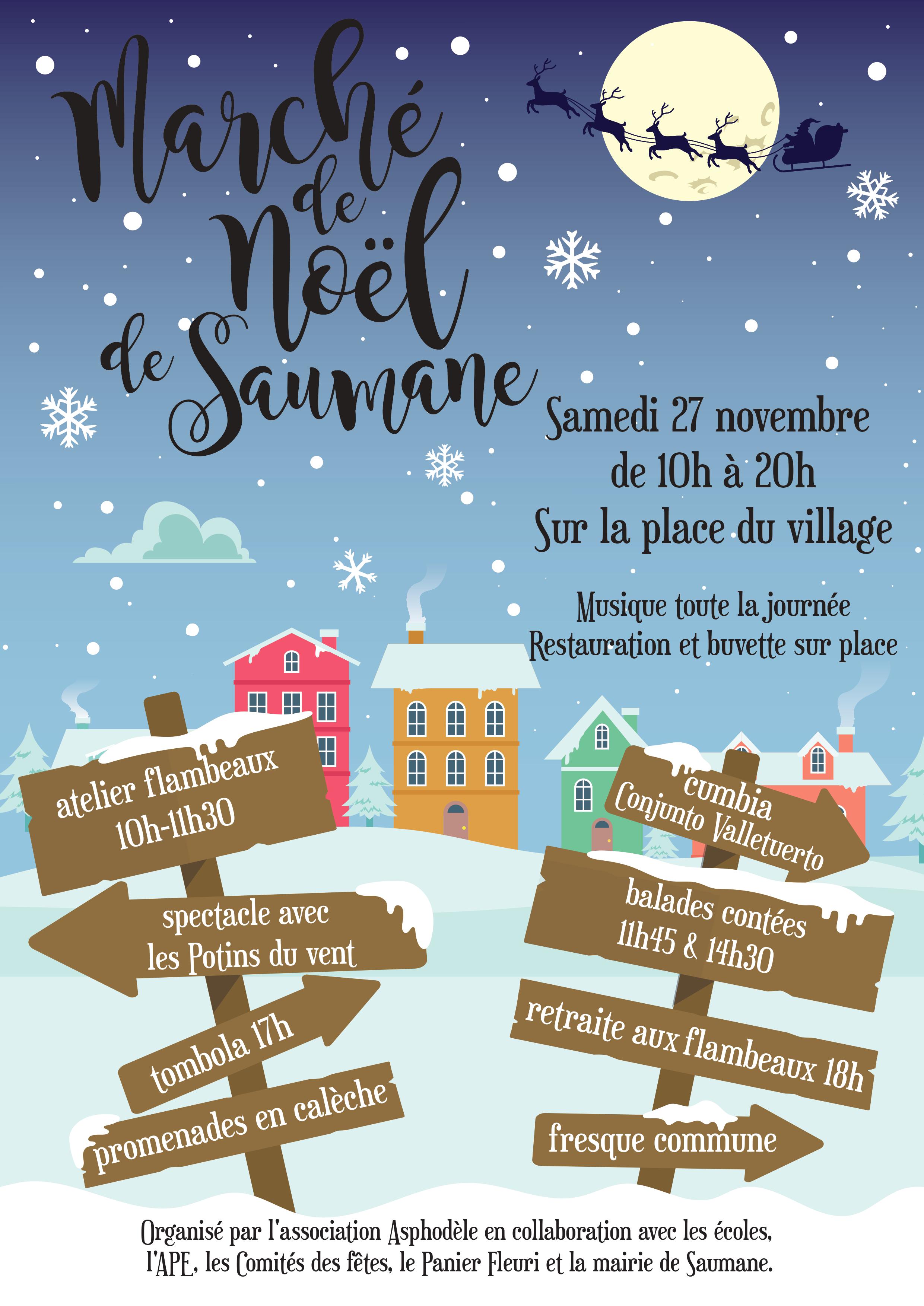 L’association Asphodèle, en collaboration avec les écoles, l’APE, les comités des fêtes, le Panier Fleuri et la commune de Saumane, organise un marché de Noël qui se tiendra sur la pace du village ce 27 novembre 2021.