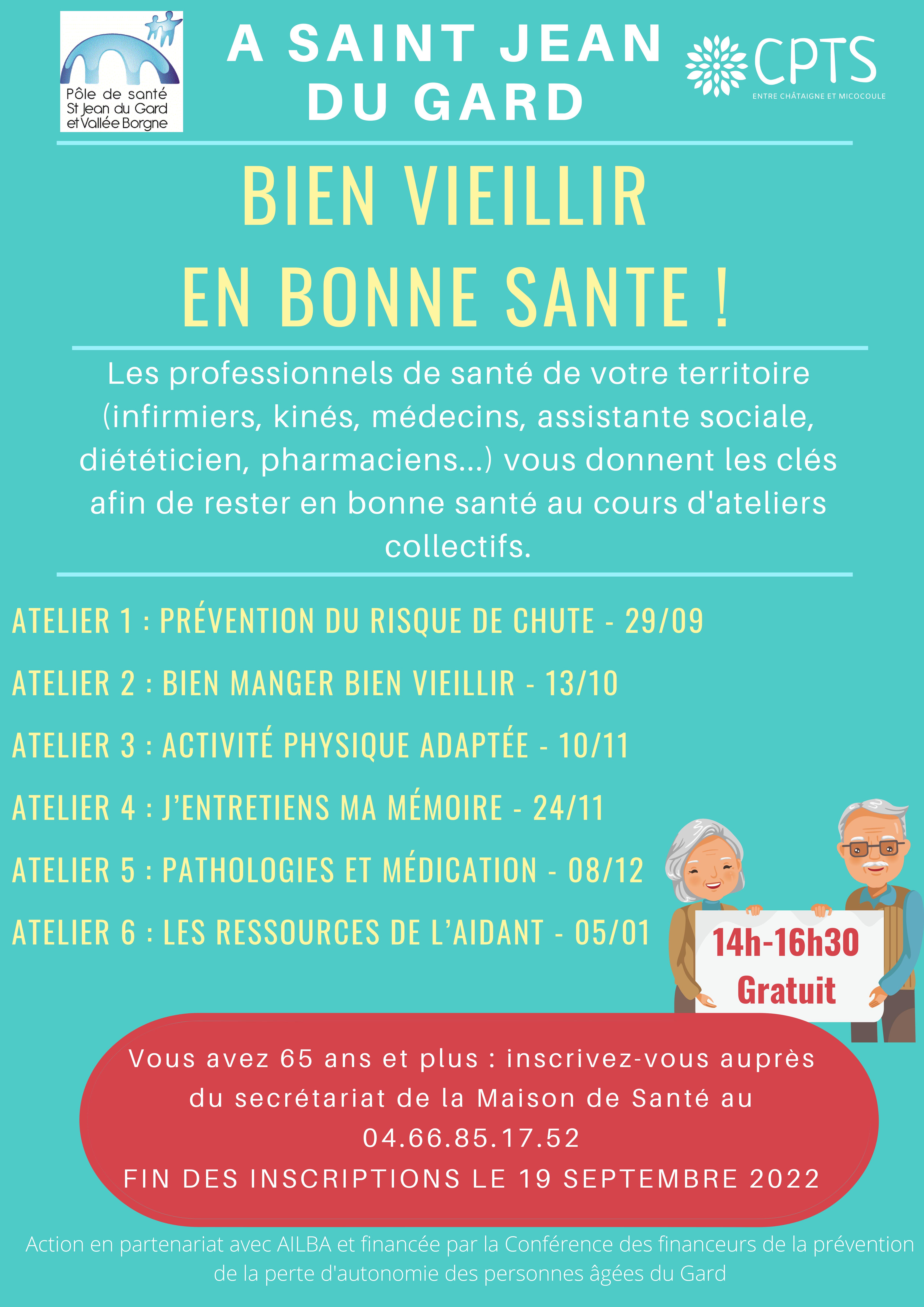 Les Professionnels de Santé du territoire organisent une action de prévention destinée aux seniors sous formes d’ateliers collectifs pour « BIEN VIEILLIR EN BONNE SANTE ».