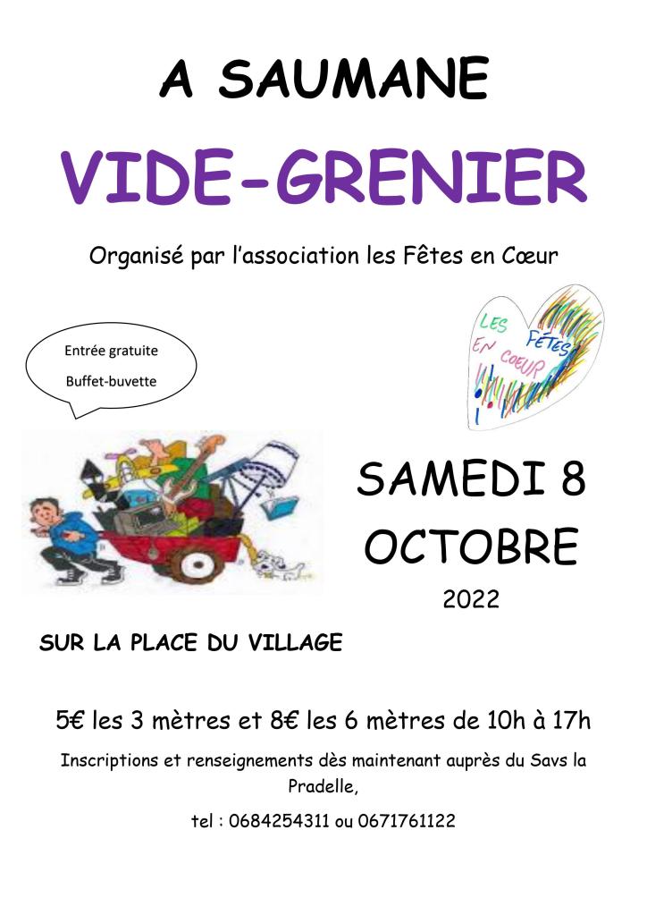 Les Fêtes en coeur organisent un vide grenier à Saumane ce 8 octobre,