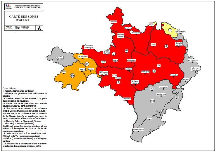 – de placer la zone Ardèche (communes gardoises) en « ALERTE » ;