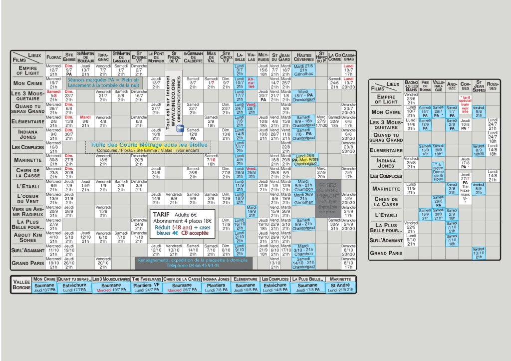 Ouverture de la billetterie à 21h15, les séances démarrent à la tombée de la nuit.