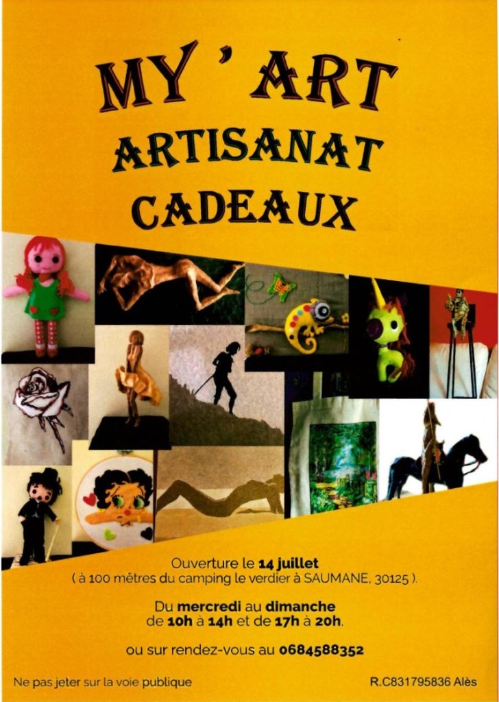 La boutique d’artisanat MY’ART ouvrira le 14 JUILLET à Saumane.