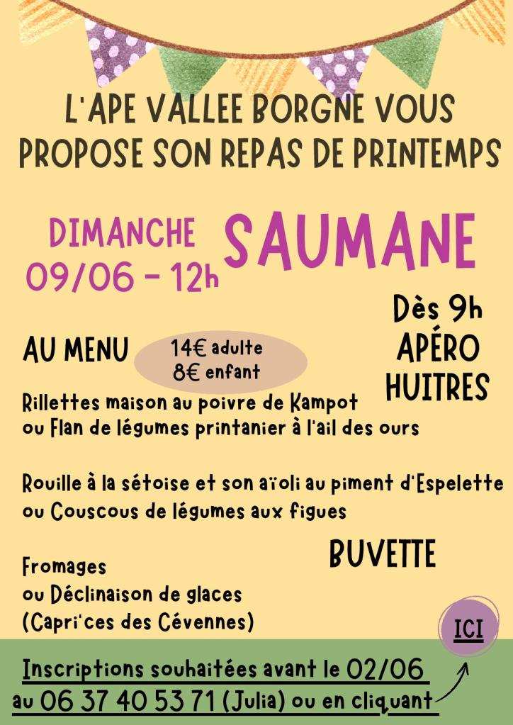 Repas de Printemps du 9 juin organisé par l’APE